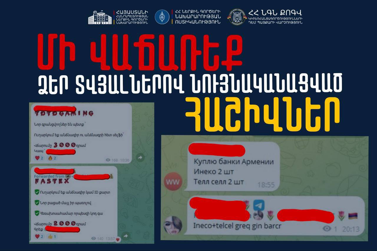 Կիբերոստիկանության փոխանցմամբ՝ նման «պատվիրման» արդյունքում հանցախումբերը հաճախ օգտագործում են գրանցված հաշիվները հակաօրինական նպատակներով՝ այլ քաղաքացիներից գումար հափշտակելու կամ անգամ մանրամասն տվյալների վրա հիմնված վարկեր ձևակերպելու համար։ Այդ պատճառով ծառայությունը հորդորում է անհապաղ չընդունել նման առաջարկներ, չհաղորդել գաղտնաբառեր, հավատարմագրեր և բանկային տվյալներ հայտնի կամ անհայտ աղբյուրներին։